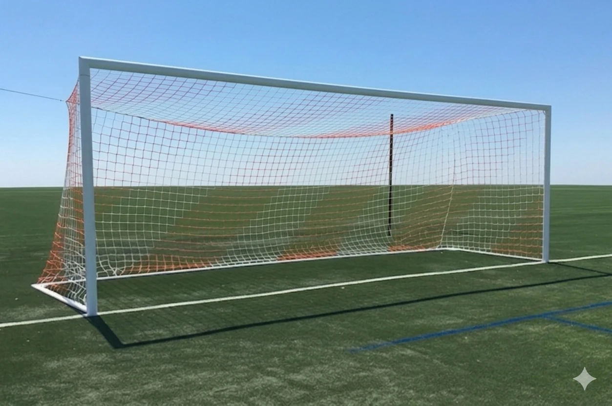 Sa maille carrée de 145 mm est conforme aux standards du football et permet une bonne visibilité du jeu.
