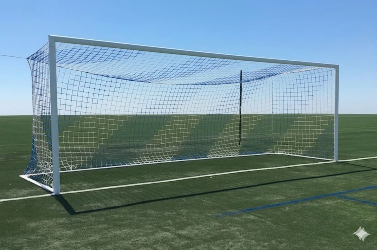 Filet de football de type européen, conçu pour les buts de football à 11. Fabriqué en polypropylène haute ténacité, ce filet avec nœuds garantit une excellente résistance à la traction, aux impacts répétés du ballon et aux conditions extérieures. Sa conception assure durabilité et fiabilité pour une utilisation régulière à intensive.